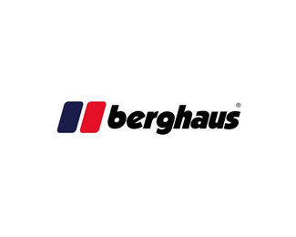 貝豪斯(Berghaus)標志的主識別圖形是兩個并行傾斜的圓角矩形,商標以藍色和紅色為主識別色。