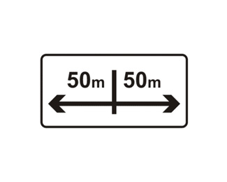 表示根據需要對禁令和指示標志規定區域的范圍。圖例為向左、向右各50米內的標識。