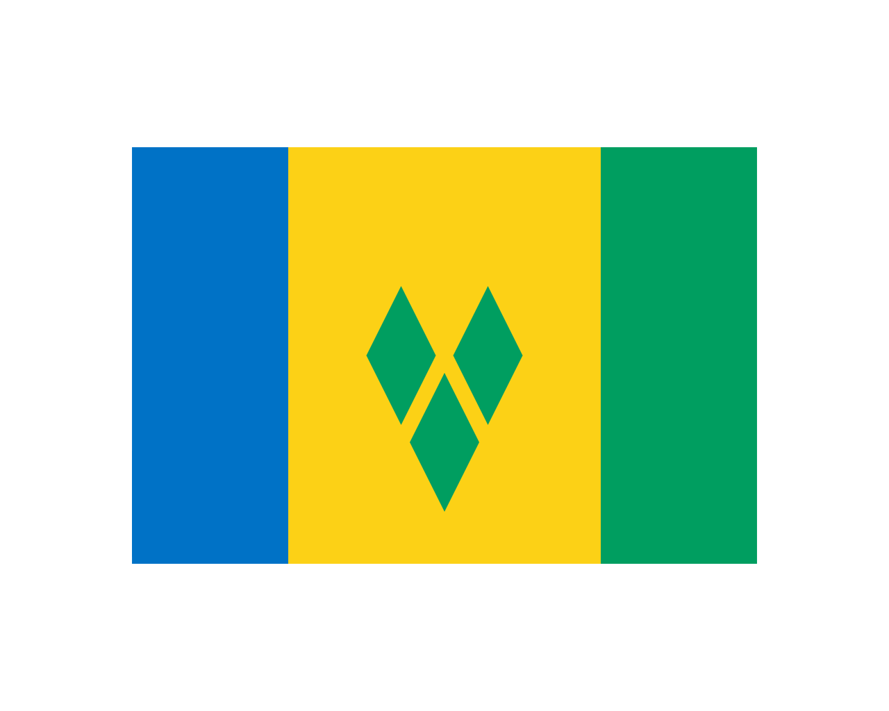 圣文森特和格林納丁斯(Saint Vincent and the Grenadines),由圣文森特島以及格林納丁斯群島組成,是位于東加勒比海小安的列斯群島南部的一個(gè)火山島國(guó),首都金斯頓。圣文森特和格林納丁斯國(guó)旗啟用于1985年10月21日,國(guó)旗呈長(zhǎng)方形,長(zhǎng)寬比為3:2。旗面自左至右由藍(lán)、黃、綠三個(gè)豎長(zhǎng)方形構(gòu)成,黃色長(zhǎng)方形中有三個(gè)綠色的菱形圖案。藍(lán)色象征海洋,綠色象征大地,黃色象征陽(yáng)光。