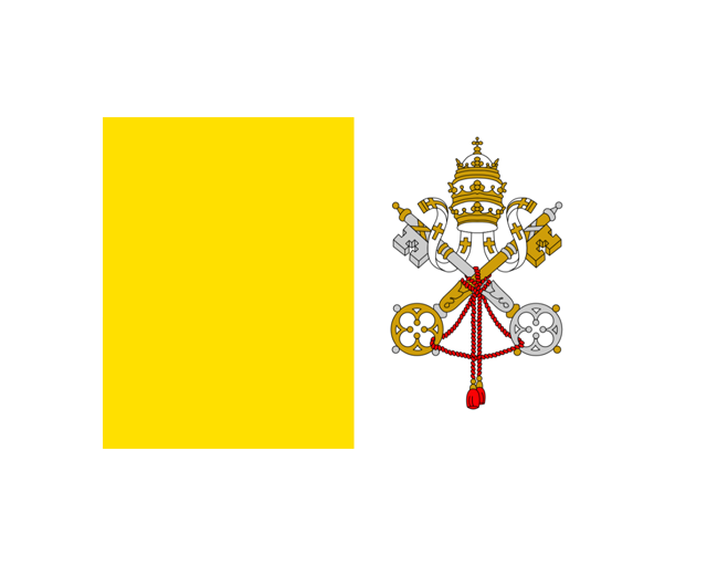 梵蒂岡城國,簡稱“梵蒂岡”,位于意大利首都羅馬西北角高地的一個內陸城邦國家。也是全球領土面積最小、人口最少的國家。由于四面都與意大利接壤,故稱“國中國”。梵蒂岡意為“先知之城”。梵蒂岡國旗由兩個面積相等的豎長方形組成,靠旗桿側為黃色,另一側則為白色。白色上還繪有教皇的牧徽:兩把交叉的圣彼得的鑰匙和一頂教皇的三重冕。黃白兩色是耶穌十二宗徒之長圣彼得的兩把鑰匙的顏色,代表了兩種最珍貴的金屬:金與銀;來自于1808年2月以來教廷衛兵瑞士衛隊帽徽的顏色。1825年時教皇良十二世訂定這面旗幟。