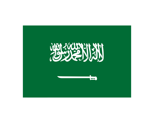沙特阿拉伯王國(英語:Kingdom of Saudi Arabia),通稱沙特阿拉伯(Saudi Arabia,臺灣譯為沙烏地阿拉伯),簡稱沙特,沙特位于亞洲西南部的阿拉伯半島。沙特阿拉伯國旗呈長方形,長與寬之比為3∶2。綠色的旗地上寫著伊斯蘭教的清真格言:“萬物非主,唯有安拉;穆罕默德,主之使者”(這是最準確的翻譯)。下方繪有寶刀,象征圣戰和自衛。綠色象征和平,是伊斯蘭國家所喜愛的一種吉祥顏色。國旗的顏色和圖案突出地表明了該國的宗教信仰。