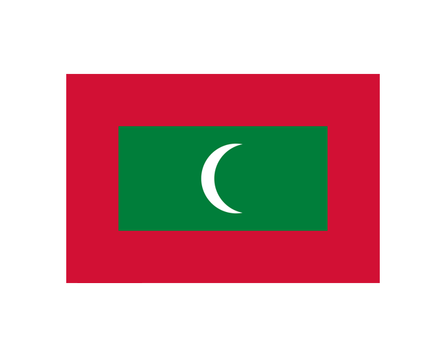 馬爾代夫共和國(The Republic of Maldives,原名馬爾代夫群島),印度洋上的群島國家。馬爾代夫的首都是馬累,國歌為《團結(jié)一致向我們的國家致敬》,馬爾代夫國旗呈長方形,長與寬之比為3∶2。國旗由紅、綠、白三種顏色組成。旗地為綠色長方形,四周為紅邊。紅邊的寬度為全旗寬度的四分之一,綠色長方形的寬度為全旗寬度的一半。 一牙白色新月位于綠色長方形的正中。紅色象征為國家主權(quán)和獨立而獻身的民族英雄的鮮血;綠色意味著生命、進步和繁榮,白色新月表示和平、安寧和馬爾代夫人民對伊斯蘭教的信仰。