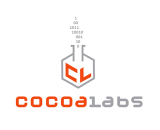 Cocoa實(shí)驗(yàn)室標(biāo)志設(shè)計(jì)使用試管和字符“0”、“1”的創(chuàng)意結(jié)合,整體富有科技感,以橙色和灰色為主色調(diào)。