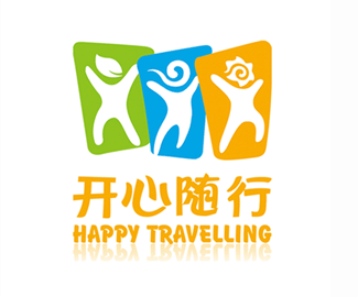 標志以象征大自然的綠葉、白云、太陽為主設計元素,并融入歡快旅行的人形,體現了開心隨行旅行社“開心旅行”的宗旨。