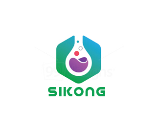 化工企業標志使用了六邊形與反應瓶,反應瓶直接的代表了化工的行業特色,氣泡的加入則帶動了標志的活力,標志顏色搭配清新明了。