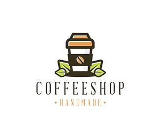餐飲外賣服務商家的圖標,飲料杯子和綻放的綠葉,圖標整體對稱,使用線段與色塊的疊加組合,色彩淡雅沉穩。