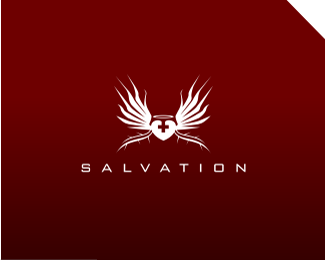 Salvation醫療機構創意標志設計,融入羽毛、愛心等元素,整體以紅色和白色的色彩作為主識別色,可應用于醫療相關的標志設計。