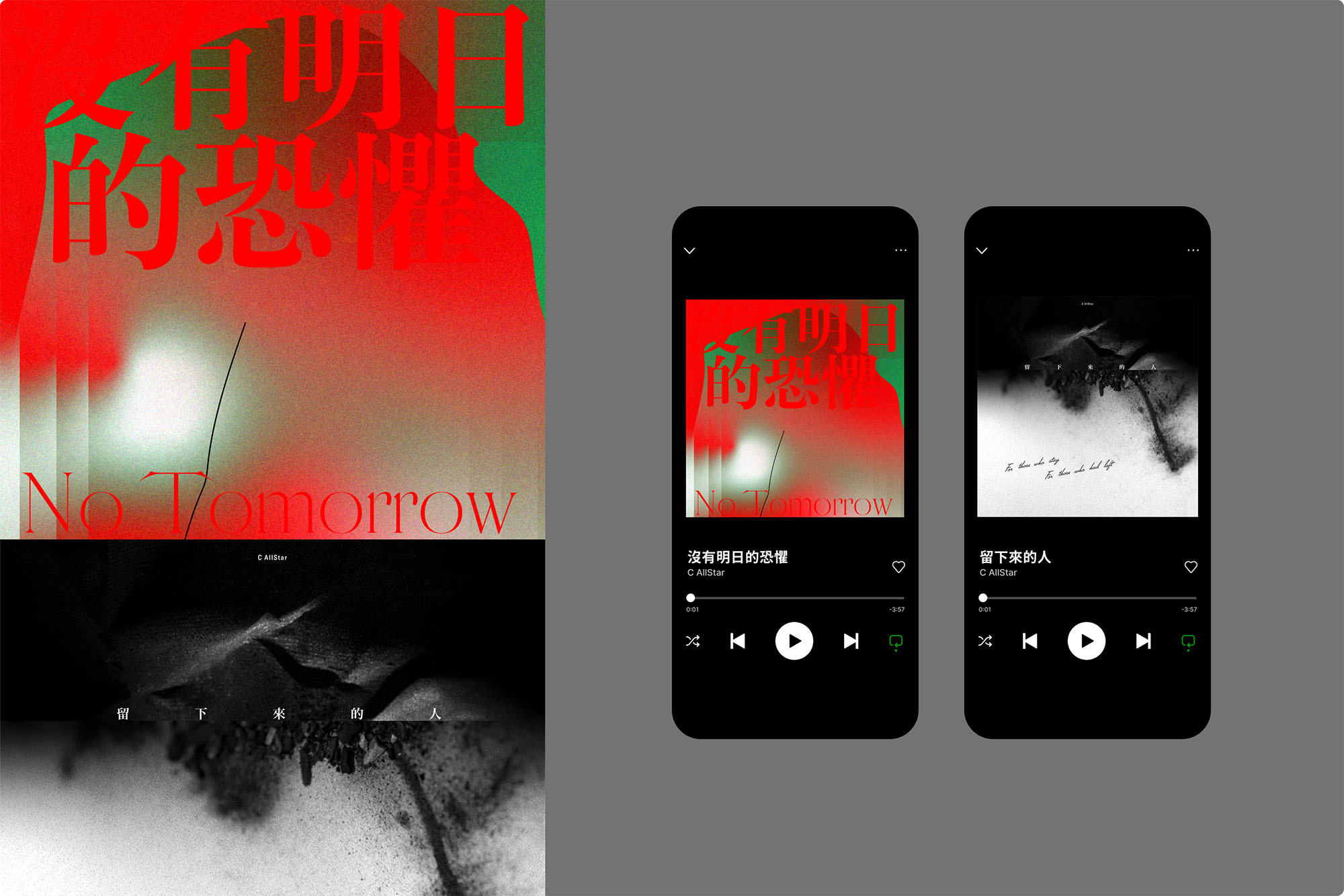 品牌設(shè)計(jì)公司案例強(qiáng)調(diào)“情緒可視化”設(shè)計(jì)哲學(xué)。以《No Tomorrow》專輯為例,設(shè)計(jì)師采用警報(bào)紅色漸變填充畫面,通過流體形態(tài)隱喻恐懼情緒的蔓延;黑色線條則象征個(gè)體在動(dòng)蕩中的堅(jiān)韌姿態(tài),形成“恐懼-希望”的視覺辯證關(guān)系。這種品牌策劃設(shè)計(jì)思維,使每張封面都成為承載集體記憶的“視覺紀(jì)念碑”。
